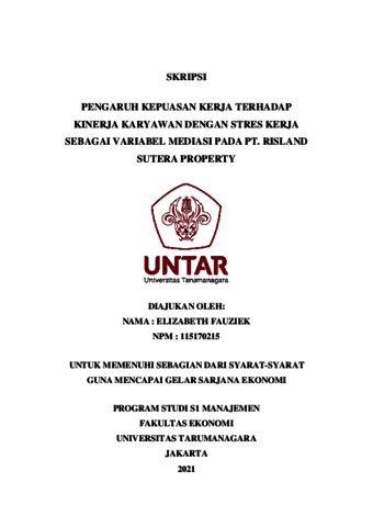 FAUZIEK, ELIZABETH (2021) PENGARUH KEPUASAN KERJA TERHADAP KINERJA KARYAWAN DENGAN STRES KERJA SEBAGAI VARIABEL MEDIASI PADA PT. RISLAND SUTERA PROPERTY. Skripsi thesis, Universitas Tarumanagara.