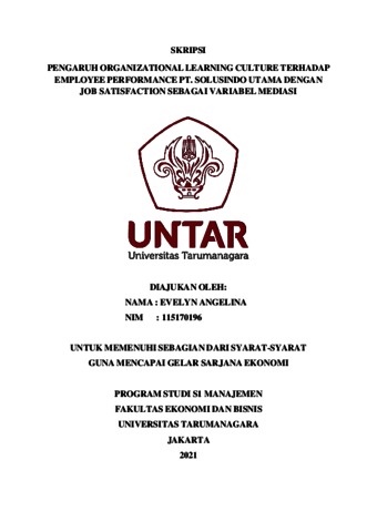 ANGELINA, EVELYN (2021) PENGARUH ORGANIZATIONAL LEARNING CULTURE TERHADAP EMPLOYEE PERFORMANCE PT. SOLUSINDO UTAMA DENGAN JOB SATISFACTION SEBAGAI VARIABEL MEDIASI. Skripsi thesis, Universitas Tarumanagara.