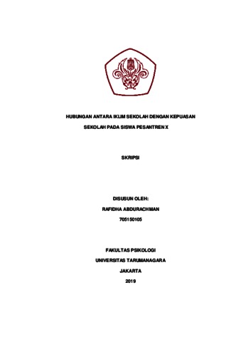 Abdurachman, Rafidha (2022) Hubungan Antara Persepsi Siswa Terhadap Iklim Sekolah dengan Kepuasan Sekolah Pada Siswa Pesantren X. Skripsi thesis, Universitas Tarumanagara.