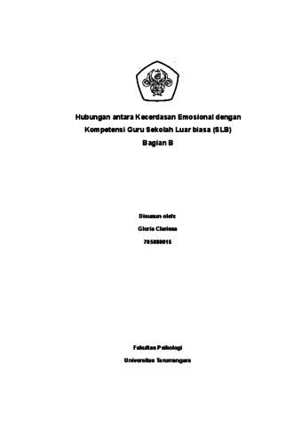 Clarissa, Gloria (2022) Hubungan antara Kecerdasan Emosional dengan Kompetensi Guru Sekolah Luar Biasa Bagian B. Skripsi thesis, Universitas Tarumanagara.