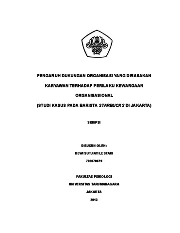 Lestari, Dewi Sutjiati (2022) Pengaruh Dukungan Organisasi yang Dirasakan Karyawan terhadap Perilaku Kewargaan Organisasi (Studi Kasus pada Barista Starbucks di Jakarta). Skripsi thesis, Universitas Tarumanagara.