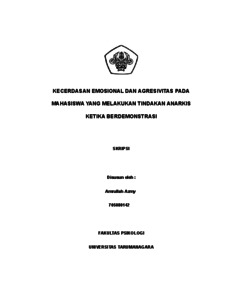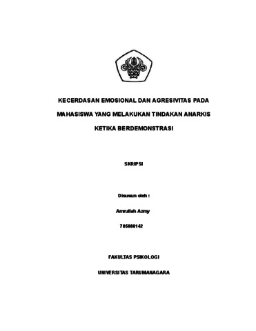 Azmy, Amrullah (2022) Kecerdasan Emosional dan Agresivitas pada Mahasiswa yang Melakukan Tindakan Anarkis ketika Berdemonstrasi. Skripsi thesis, Universitas Tarumanagara.