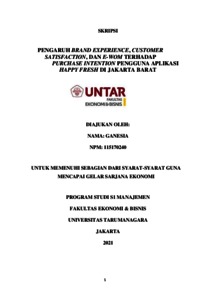 GANESIA, GANESIA (2021) PENGARUH BRAND EXPERIENCE, CUSTOMER SATISFACTION, DAN E-WOM TERHADAP PURCHASE INTENTION PENGGUNA APLIKASI HAPPY FRESH DI JAKARTA BARAT. Skripsi thesis, Universitas Tarumanagara.