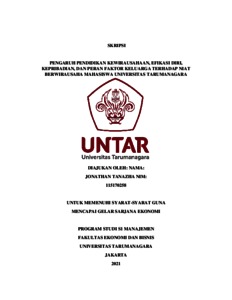 Kata kunci: Pendidikan Kewirausahaan, Efikasi Diri, Kepribadian, Peran Faktor Keluarga, Niat Berwirausaha