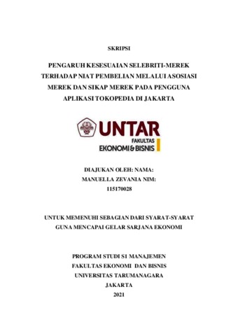ZEVANIA, MANUELLA (2021) PENGARUH KESESUAIAN SELEBRITI-MEREK TERHADAP NIAT PEMBELIAN MELALUI ASOSIASI MEREK DAN SIKAP MEREK PADA PENGGUNA APLIKASI TOKOPEDIA DI JAKARTA. Skripsi thesis, Universitas Tarumanagara.