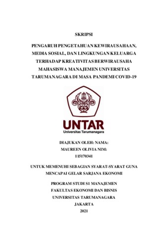 OLIVIA, MAUREEN (2021) PENGARUH PENGETAHUAN KEWIRAUSAHAAN, MEDIA SOSIAL, DAN LINGKUNGAN KELUARGA TERHADAP KREATIVITAS BERWIRAUSAHA MAHASISWA MANAJEMEN UNIVERSITAS TARUMANAGARA DI MASA PANDEMI COVID-19. Skripsi thesis, Universitas Tarumanagara.