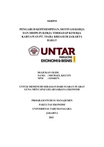 KELVIN, MICHAEL (2021) PENGARUH KEPEMIMPINAN, MOTIVASI KERJA DAN DISIPLIN KERJA TERHADAP KINERJA KARYAWAN PT. TIARA KREASI DI JAKARTA BARAT. Skripsi thesis, Universitas Tarumanagara.