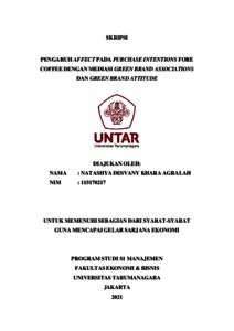 AGRALAH, NATASHYA DESVANY KHARA (2021) PENGARUH AFFECT PADA PURCHASE INTENTIONS FORE COFFEE DENGAN MEDIASI GREEN BRAND ASSOCIATIONS DAN GREEN BRAND ATTITUDE. Skripsi thesis, Universitas Tarumanagara.