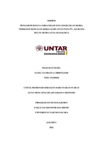 CHRISTIANIE, NATHASYA (2021) PENGARUH BUDAYA ORGANISASI DAN LINGKUNGAN KERJA TERHADAP KEPUASAN KERJA KARYAWAN PADA PT. ASURANSI MULTI ARTHA GUNA DI JAKARTA. Skripsi thesis, Universitas Tarumanagara.