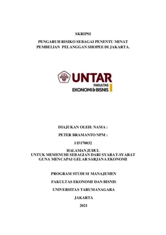BRAMANTO, PETER (2021) PENGARUH RISIKO SEBAGAI PENENTU MINAT PEMBELIAN PELANGGAN SHOPEE DI JAKARTA. Skripsi thesis, Universitas Tarumanagara.