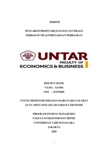 SANDI, SANDI (2021) PENGARUH PROFITABILITAS DAN LEVERAGE TERHADAP NILAI PERUSAHAAN PERBANKAN. Skripsi thesis, Universitas Tarumanagara.