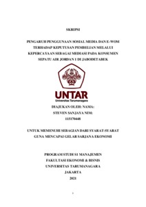 SANJAYA, STEVEN (2021) PENGARUH PENGGUNAAN SOSIAL MEDIA DAN E-WOM TERHADAP KEPUTUSAN PEMBELIAN MELALUI KEPERCAYAAN SEBAGAI MEDIASI PADA KONSUMEN SEPATU AIR JORDAN 1 DI JABODETABEK. Skripsi thesis, Universitas Tarumanagara.