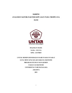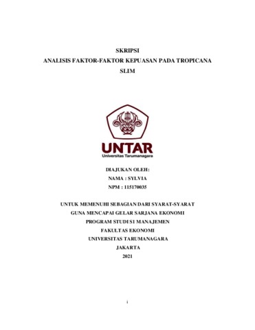 SYLVIA, SYLVIA (2021) ANALISIS FAKTOR-FAKTOR KEPUASAN PADA TROPICANA SLIM. Skripsi thesis, Universitas Tarumanagara.