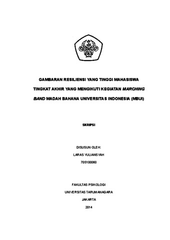 Yuliansyah, Laras (2022) Gambaran Resiliensi yang Tinggi Mahasiswa Tingkat Akhir yang Mengikuti Kegiatan Marching Band Madah Bahana Universitas Indonesia (MBUI). Skripsi thesis, Universitas Tarumanagara.
