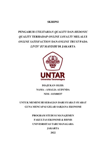 AUDYNDA, AMALIA (2022) PENGARUH UTILITARIAN QUALITY DAN HEDONIC QUALITY TERHADAP ONLINE LOYALTY MELALUI ONLINE SATISFACTION DAN ONLINE TRUST PADA LIVIN’ BY MANDIRI DI JAKARTA. Skripsi thesis, Universitas Tarumanagara.