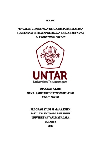 MOELJONO, ANDRIANTO TATNO (2022) PENGARUH LINGKUNGAN KERJA, DISIPLIN KERJA DAN KOMPENSASI TERHADAP KEPUASAN KERJA KARYAWAN SAY SOMETHING COFFEE. Skripsi thesis, Universitas Tarumanagara.