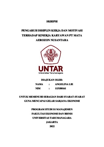 LIE, ANGELINA (2022) PENGARUH DISIPLIN KERJA DAN MOTIVASI TERHADAP KINERJA KARYAWAN PT MATA AEROZON NUSANTARA. Skripsi thesis, Universitas Tarumanagara.