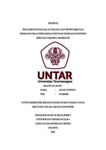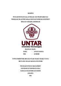 VIONITA, ANGGI (2022) PENGARUH FINANCIAL LEVERAGE DAN PROFITABILITAS TERHADAP NILAI PERUSAHAAN DENGAN KEBIJAKAN DIVIDEN SEBAGAI VARIABEL MODERASI. Skripsi thesis, Universitas Tarumanagara.