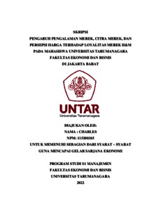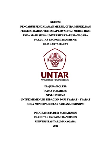 CHARLES, CHARLES (2022) PENGARUH PENGALAMAN MEREK, CITRA MEREK, DAN PERSEPSI HARGA TERHADAP LOYALITAS MEREK H&M PADA MAHASISWA UNIVERSITAS TARUMANAGARA FAKULTAS EKONOMI DAN BISNIS DI JAKARTA BARAT. Skripsi thesis, Universitas Tarumanagara.