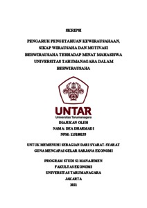 DHARMADI, DEA (2022) PENGARUH PENGETAHUAN KEWIRAUSAHAAN, SIKAP WIRAUSAHA DAN MOTIVASI BERWIRAUSAHA TERHADAP MINAT MAHASISWA UNIVERSITAS TARUMANAGARA DALAM BERWIRAUSAHA. Skripsi thesis, Universitas Tarumanagara.
