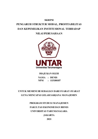 DENIS, DENIS (2022) PENGARUH STRUKTUR MODAL, PROFITABILITAS DAN KEPEMILIKAN INSTITUSIONAL TERHADAP NILAI PERUSAHAAN. Skripsi thesis, Universitas Tarumanagara.