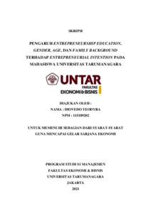 YEODYRA, DIOVEDO (2022) PENGARUH ENTREPRENEURSHIP EDUCATION, GENDER, AGE, DAN FAMILY BACKGROUND TERHADAP ENTREPRENEURIAL INTENTION PADA MAHASISWA UNIVERSITAS TARUMANAGARA. Skripsi thesis, Universitas Tarumanagara.