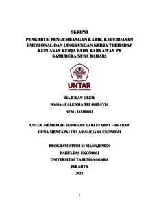 OKTAVIA, FALENSIA TRI (2022) PENGARUH PENGEMBANGAN KARIR, KECERDASAN EMOSIONAL DAN LINGKUNGAN KERJA TERHADAP KEPUASAN KERJA PADA KARYAWAN PT SAMUDERA NUSA BAHARI. Skripsi thesis, Universitas Tarumanagara.