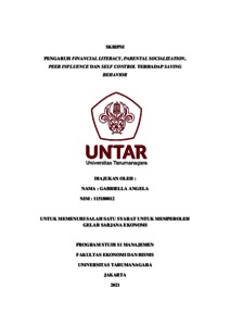 ANGELA, GABRIELLA (2022) PENGARUH FINANCIAL LITERACY, PARENTAL SOCIALIZATION, PEER INFLUENCE DAN SELF CONTROL TERHADAP SAVING BEHAVIOR. Skripsi thesis, Universitas Tarumanagara.