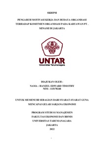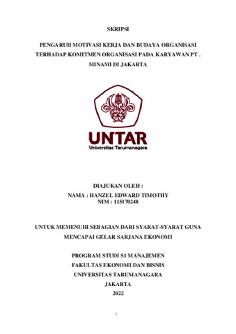 TIMOTHY, HANZEL EDWARD (2022) PENGARUH MOTIVASI KERJA DAN BUDAYA ORGANISASI TERHADAP KOMITMEN ORGANISASI PADA KARYAWAN PT . MINAMI DI JAKARTA. Skripsi thesis, Universitas Tarumanagara.