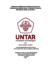 JEKSEN, HOCKY (2022) PENGARUH PENDIDIKAN KEWIRAUSAHAAN DAN PENGGUNAAN MEDIA SOSIAL TERHADAP PERILAKU WIRAUSAHA MUDA DI JAKARTA. Skripsi thesis, Universitas Tarumanagara.