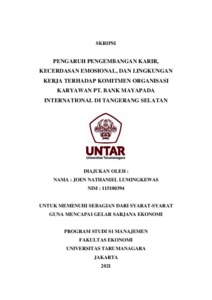 LUMINGKEWAS, JOEN NATHANIEL (2022) PENGARUH PENGEMBANGAN KARIR, KECERDASAN EMOSIONAL, DAN LINGKUNGAN KERJA TERHADAP KOMITMEN ORGANISASI KARYAWAN PT. BANK MAYAPADA INTERNATIONAL DI TANGERANG SELATAN. Skripsi thesis, Universitas Tarumanagara.