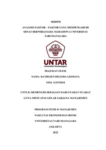 LESMANA, KATHLEEN BELINDA (2022) ANALISIS FAKTOR – FAKTOR YANG MEMPENGARUHI MINAT BERWIRAUSAHA MAHASISWA UNIVERSITAS TARUMANAGARA. Skripsi thesis, Universitas Tarumanagara.