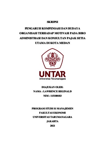REGINALD, LAWRENCE (2022) PENGARUH KOMPENSASI DAN BUDAYA ORGANISASI TERHADAP MOTIVASI PADA BIRO ADMINISTRASI DAN KONSULTAN PAJAK SETIA UTAMA DI KOTA MEDAN. Skripsi thesis, Universitas Tarumanagara.