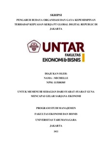 MICHELLE, MICHELLE (2022) PENGARUH BUDAYA ORGANISASI DAN GAYA KEPEMIMPINAN TERHADAP KEPUASAN KERJA PT GLOBAL DIGITAL REPUBLIC DI JAKARTA. Skripsi thesis, Universitas Tarumanagara.