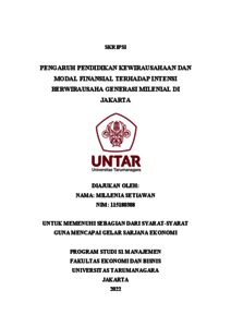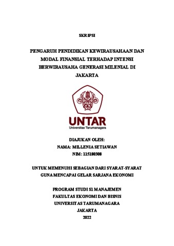 SETIAWAN, MILLENIA (2022) PENGARUH PENDIDIKAN KEWIRAUSAHAAN DAN MODAL FINANSIAL TERHADAP INTENSI BERWIRAUSAHA GENERASI MILENIAL DI JAKARTA. Skripsi thesis, Universitas Tarumanagara.