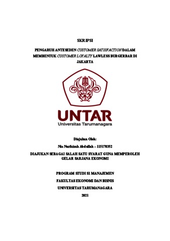 Abdullah, Nia Nurfaizah (2022) PENGARUH ANTESEDEN CUSTOMER SATISFACTION DALAM MEMBENTUK CUSTOMER LOYALTY LAWLESS BURGERBAR DI JAKARTA. Skripsi thesis, Universitas Tarumanagara.