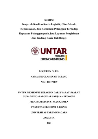 TATANG, NICOLAS EVAN (2022) Pengaruh Kualitas Servis Logistik, Citra Merek, Kepercayaan, dan Komitmen Pelanggan Terhadap Kepuasan Pelanggan pada Jasa Layanan Pengiriman Jam Gadang Kurir Bukittinggi. Skripsi thesis, Universitas Tarumanagara.