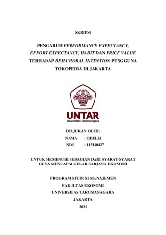 ODELIA, ODELIA (2022) PENGARUH PERFORMANCE EXPECTANCY, EFFORT EXPECTANCY, HABIT DAN PRICE VALUE TERHADAP BEHAVIORAL INTENTION PENGGUNA TOKOPEDIA DI JAKARTA. Skripsi thesis, Universitas Tarumanagara.
