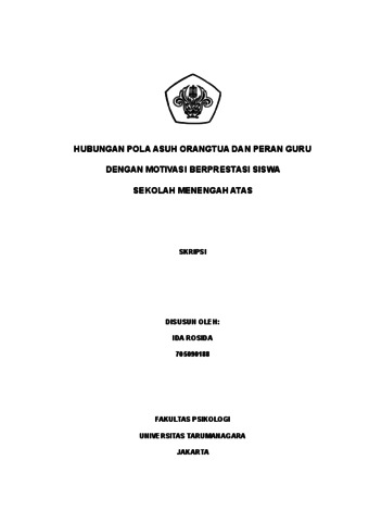 Rosida, Ida (2022) Hubungan Pola Asuh dan Peran Guru dengan Motivasi Berprestasi Siswa SMA. Skripsi thesis, Universitas Tarumanagara.