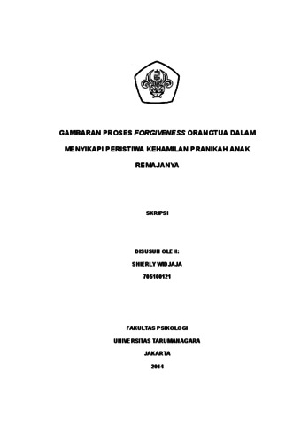 Widjaja, Shierly (2022) Gambaran Forgiveness dalam Menyikapi Peristiwa Kehamilan Pranikah Anak Remajanya. Skripsi thesis, Universitas Tarumanagara.