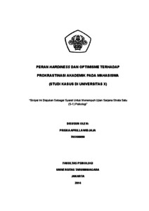 | Uncontrolled Keywords: | hardiness, optimisme, prokrastinasi akademik, dan mahasiswa |