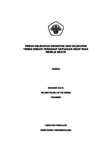 | Uncontrolled Keywords: | kelekatan orang tua, kelekatan teman sebaya, kepuasan hidup, remaja madya |