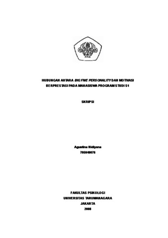 Nidiyana, Agustina (2022) Hubungan antara big five personality dan motivasi berprestasi pada mahasiswa program studi S1. Skripsi thesis, Universitas Tarumanagara.