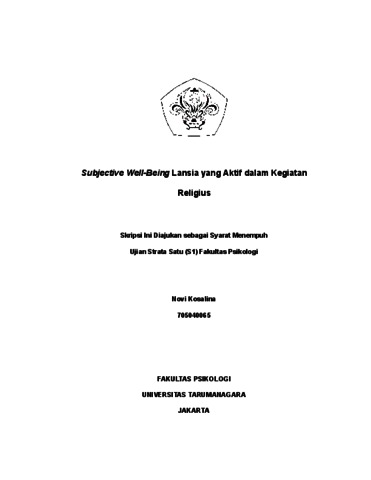 Kosalina, Novi (2022) Subjective Well-Being pada Lansia yang Aktif dalam Kegiatan Religius. Skripsi thesis, Universitas Tarumanagara.