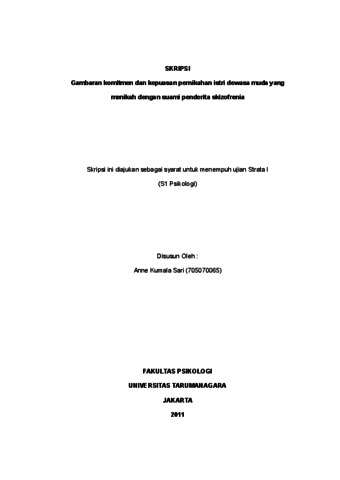 Sari, Anne Kumala (2022) Gambaran komitmen dan kepuasan pernikahan istri yang menikah dengan penderita skizofrenia. Skripsi thesis, Universitas Tarumanagara.