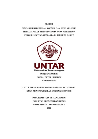 LEHMAN, PETER (2022) PENGARUH KEBUTUHAN KOGNISI DAN JENIS KELAMIN TERHADAP NIAT BERWIRAUSAHA PADA MAHASISWA PERGURUAN TINGGI SWASTA DI JAKARTA BARAT. Skripsi thesis, Universitas Tarumanagara.