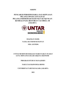 SETIAWAN, RAYMOND (2022) PENGARUH PERSEPSI HARGA DAN KEPUASAN PELANGANPADA LOYALITAS PELANGANDIMEDIASI OLEH NIAT KUNJUNGAN KEMBALI PADA RESTORAN TACOBELL DI JAKARTA. Skripsi thesis, Universitas Tarumanagara.
