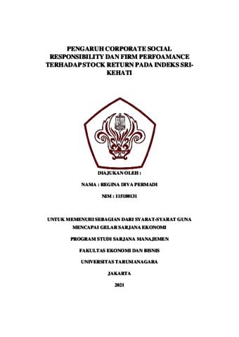 PERMADI, REGINA DIVA (2021) PENGARUH CORPORATE SOCIAL RESPONSIBILITY DAN FIRM PERFOAMANCE TERHADAP STOCK RETURN PADA INDEKS SRI-KEHATI. Skripsi thesis, Universitas Tarumanagara.
