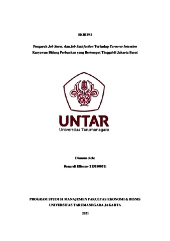 Elfenso, Renardi (2022) Pengaruh Job Stress, dan Job Satisfaction Terhadap Turnover Intention Karyawan Bidang Perbankan yang Bertempat Tinggal di Jakarta Barat. Skripsi thesis, Universitas Tarumanagara.