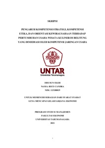 Kompetensi Strategi, Kompetensi Etika, Orientasi Kewirausahaan, Kompetensi Jaringan Usaha, Pertumbuhan Usaha, Usaha Wisata Kuliner.